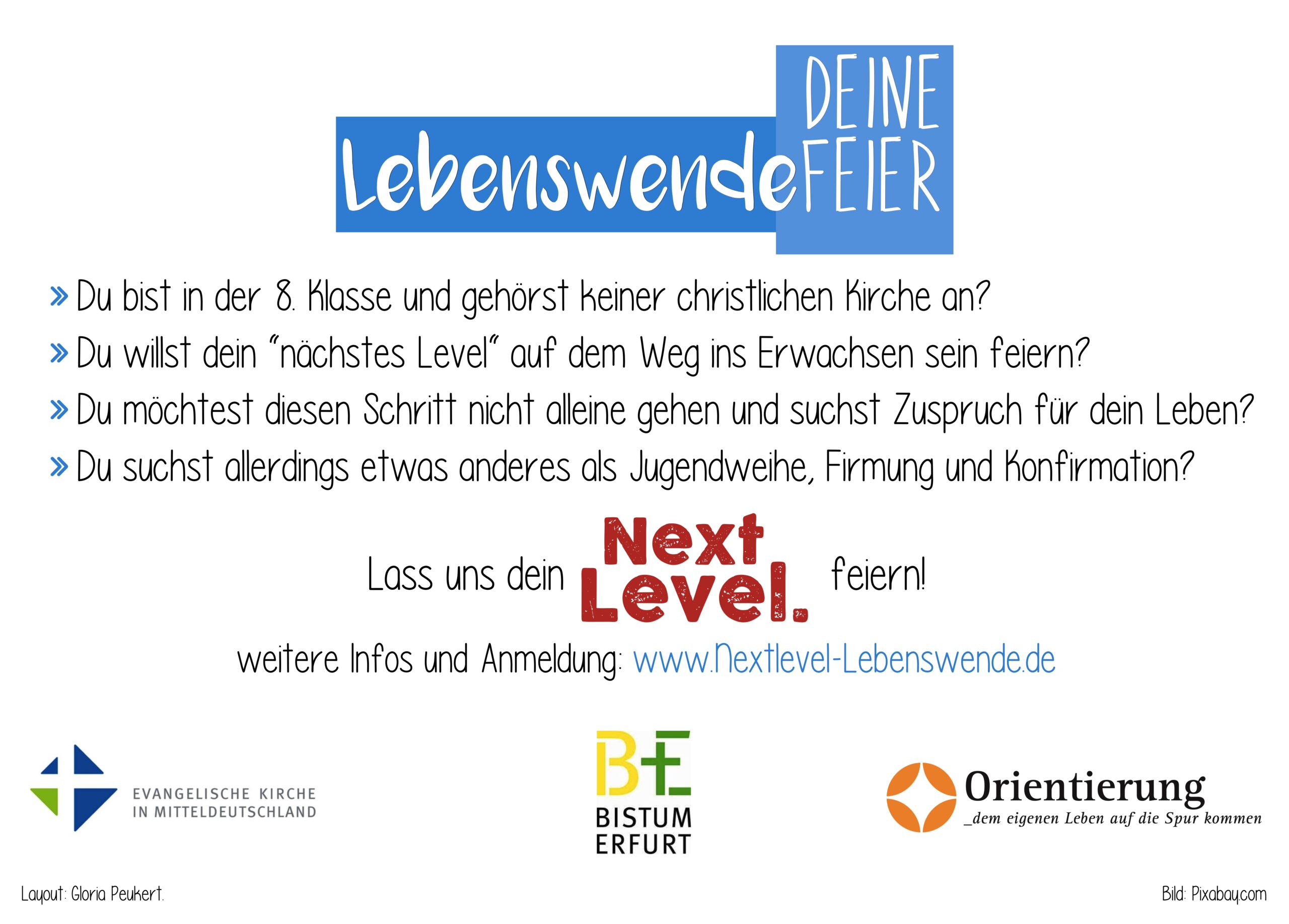 Die „Next Level“- Lebenswendefeier gestalten wir mit Dir zusammen und feiern sie am Samstag, den 06. Juni 2026 in einer der Jenaer Kirchen.